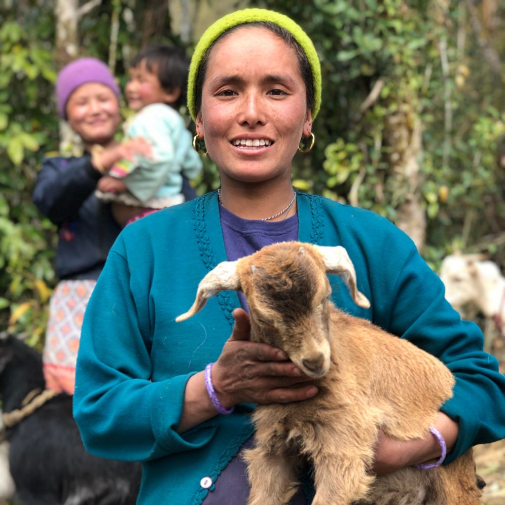 Manju lives in a village in Nepal where girls are routinely sold when they turn13. She has five children and was struggling to survive. Through She Is Safe, she received 2 goats along with business skills and goat farming husbandry training. Since then her goats have produced 22 kids!