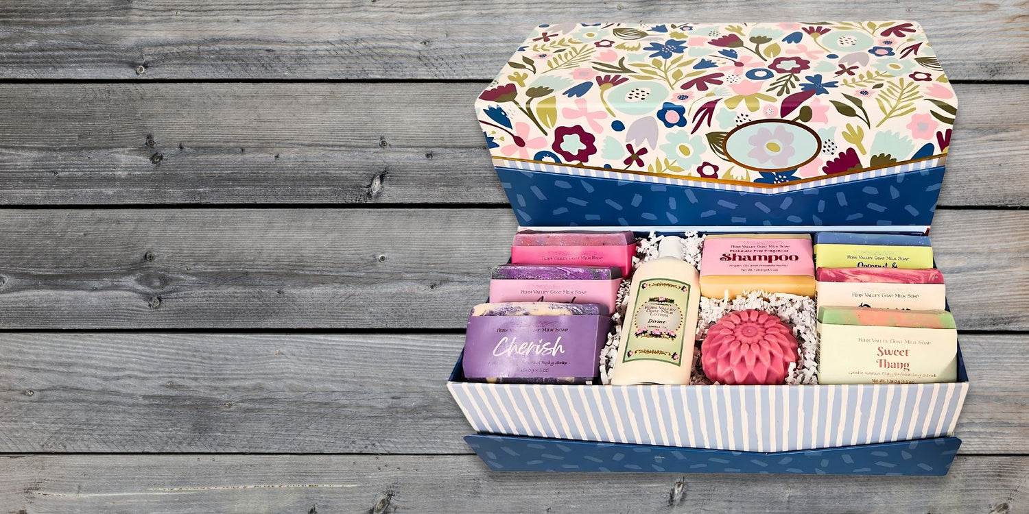 Browse our curated gift box ideas for inspiration, or let us know what you'd like to include. We offer a wide range of handmade goat milk soaps, lotions, lip balms, and body butters—perfect for any occasion or audience.